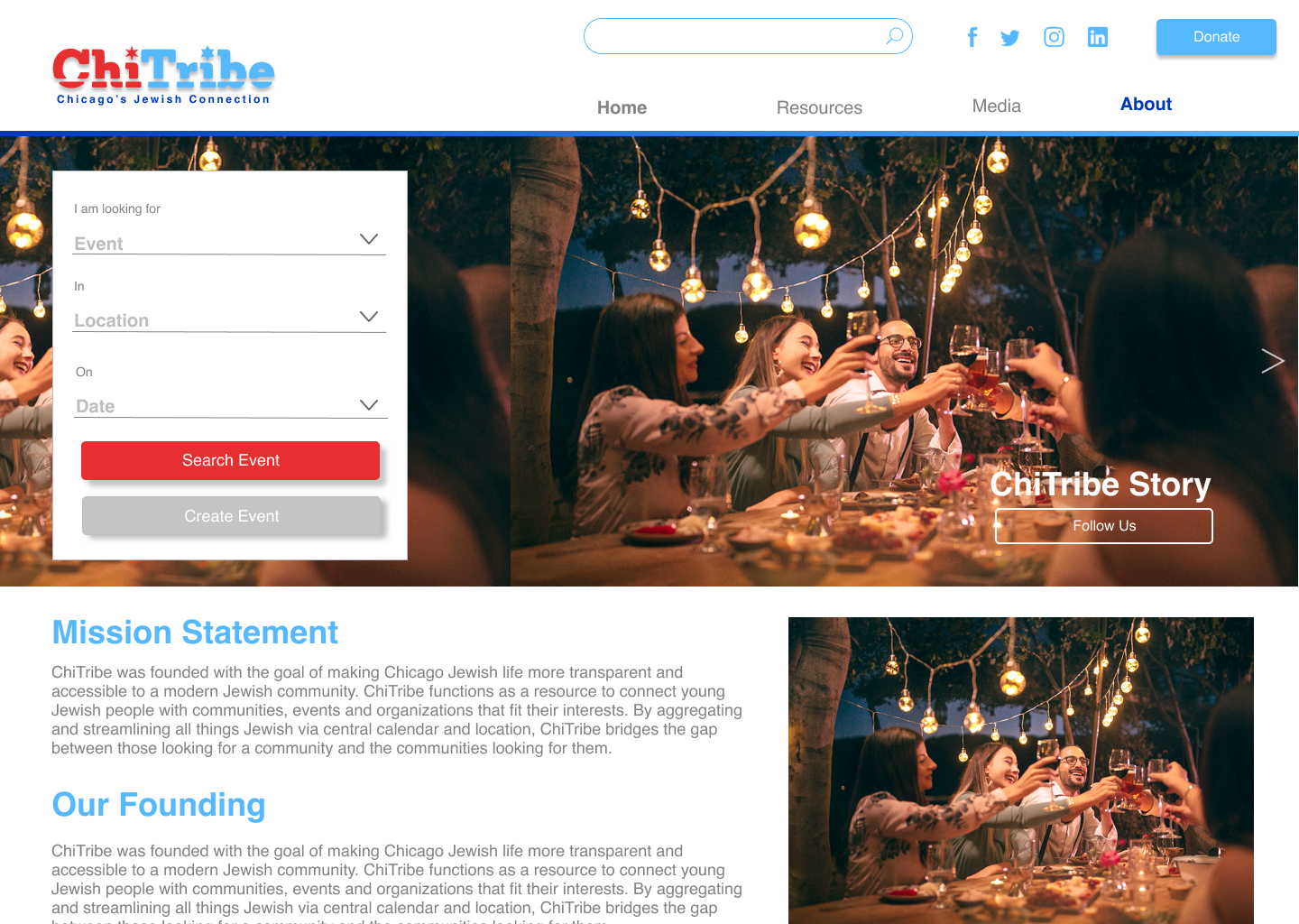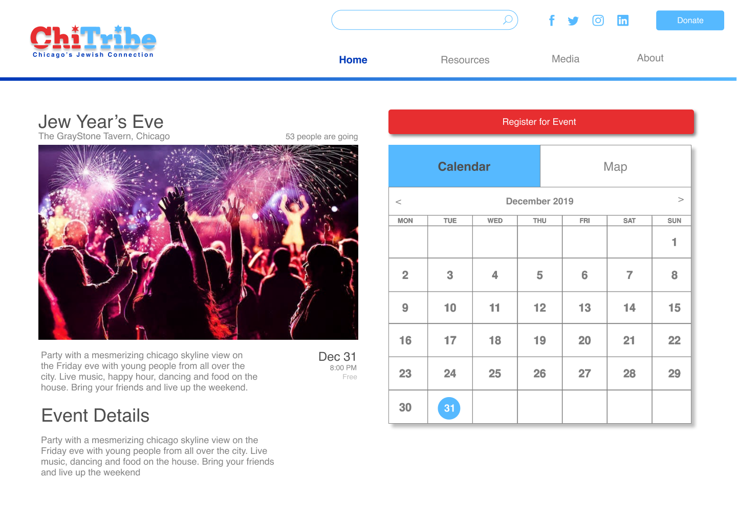 This project has the goal of reducing high (80%) user bounce rate on the Chitribe website. Chitribe is a Chicago based online service that is used to organize events for Jewish people in the city with similar interests. The project features new landing pages, revised site map and global navigation , redefined CTA buttons and central Jewish calendar. The process involved intensive research and interviews with the end users to identify opportunity areas.