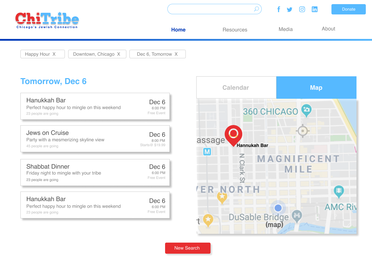 The Jewish people in Chicago need one stop shop to find about Jewish events and information in the city. They need a way to connect and create a community with Jewish people with similar interests.