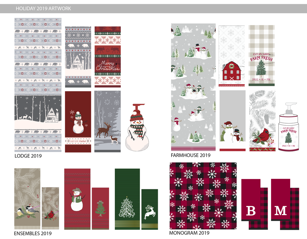 This Holiday Range was an intensive project that aimed to develop Bath Assortment around the season of Christmas and New Year for the year 2019. The collection is envisaged under different themes of Farmhouse, Cozy look and Lodge look targeting all customer groups. The collection includes Soft Bath linen as well as Hard Bath Accessories . The project extends itself into various product categories like Kids Hooded Towels, Toilet Lids and Contour sets, Soap pumps, Totes, Shower curtains, Tip Towels and Hand Towels. Different looks and themes are offered in a wide range of Holiday Products to the customer.