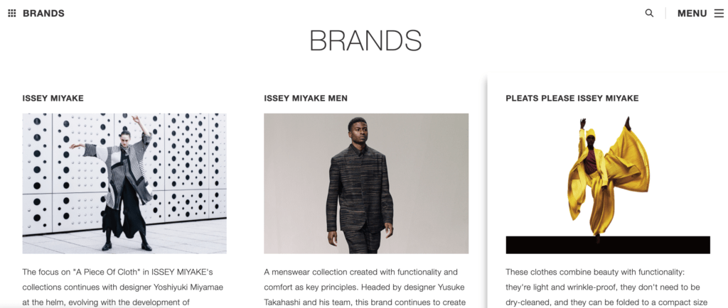 Issey Miyake is a Japanese designer who is known for his clean and minimal designs. The simulation of his ideology in the website gives clarity to the user while navigating.