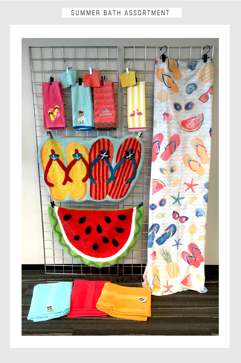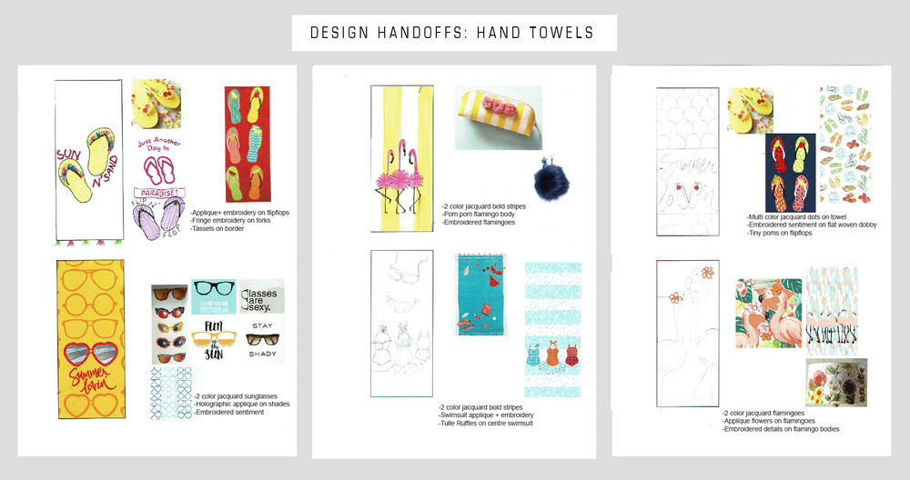 This project is a vibrant and fun collection of Bath Linen for the Summer of 2019. The design elements are deriving its inspiration from Tropical citrus fruits, trendy flamingos and beach ready flipflops. The bold stripes in bright colors give a preppy and ecstatic feel to the overall assortment.